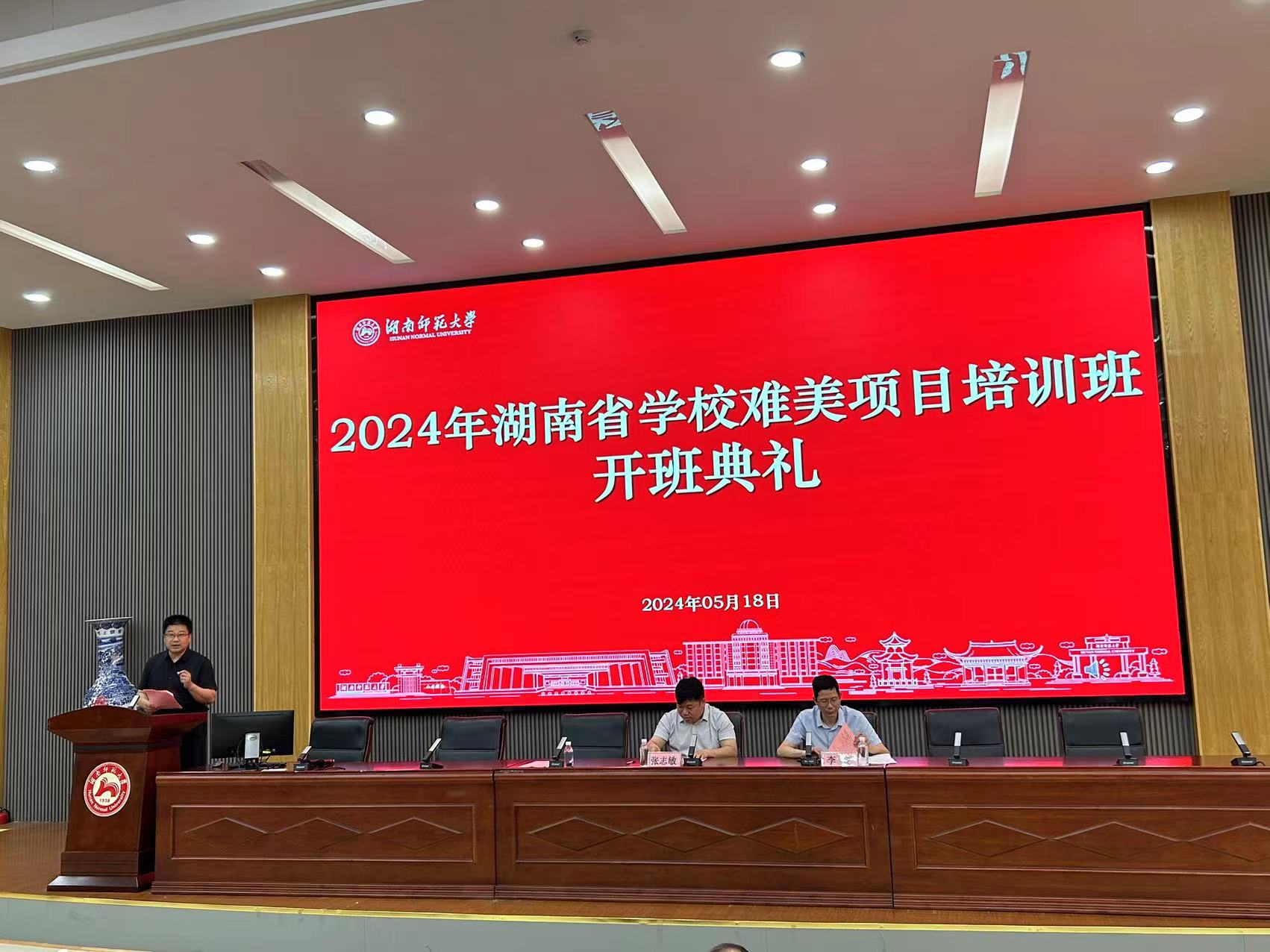 2024年5月18日上午,在我院教学楼二楼多功能报告厅举办2024年湖南省学校难美项目培训班开班典礼。湖南省教育厅体育卫生与艺术教育处一级主任科员、湖南省学生体育协会副秘书长张志敏,湖南学生体育协会难美项目主管金望明,太阳网集团tcy8722体育学院党委书记李波,以及各项目授课专家和项目负责人出席本次开班典礼。太阳网集团tcy8722体育学院李先雄主持开班典礼。