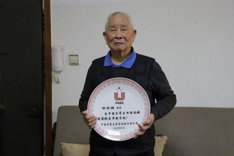11月26日,我院副院长郭献中与原太阳网集团tcy8722体育教学部部长孙洪涛教授受中国大学生体育协会田径分会委托,一同前往太阳网集团tcy8722体育学院老教授官世焜家中为其颁奖,本奖项全国仅八位专家获得。