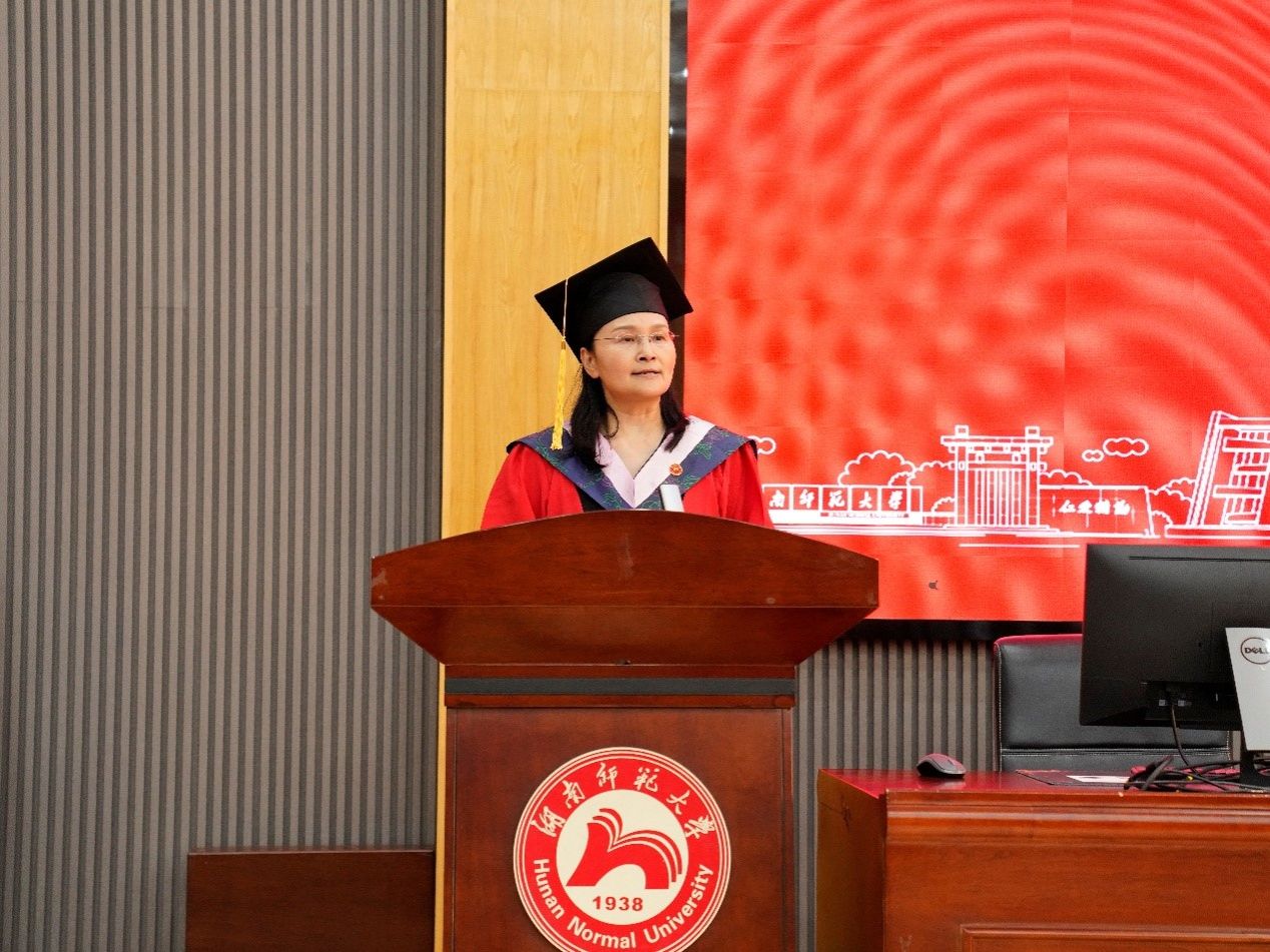 体育学院院长、博士生导师郑澜教授致辞。她为顺利毕业的同学感到欣喜与骄傲,但同时也为大家的即将离别感到依依不舍。她希望:各位毕业生积极践行师大体院精神,在各自的岗位中发扬工匠精神,争做勇于担当、无私奉献的当代优秀青年,更好肩负起新的时代使命。希望各位毕业生不负师生所托,不负母校所盼,不负国家所望,祝愿每一位毕业生前程远大,梦想成真!