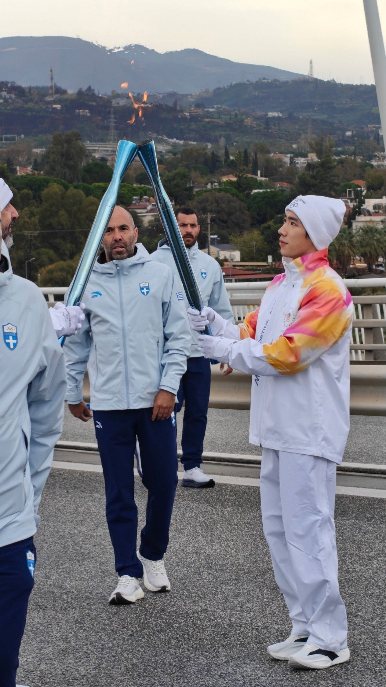 此次米兰-科尔蒂纳冬奥会圣火于11月26日在希腊古奥林匹亚遗址点燃,希腊境内传递全程2200公里,约450名火炬手参与,传递活动将持续至12月4日,随后圣火将前往意大利。传递当日,张博恒接过火炬后挥手致意,自信笑容被中外媒体定格。