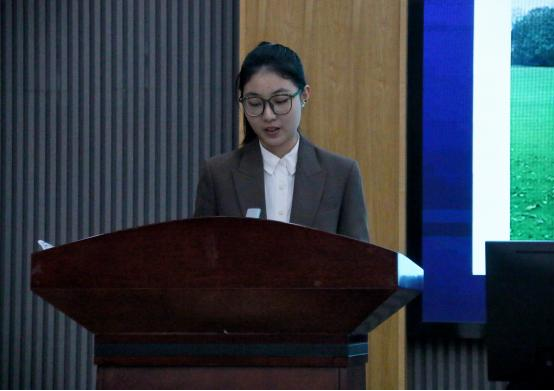 随后,巴纳德城堡学校的研习队伍进行了成果汇报。于新源同学通过自制视频展示了巴纳德城堡学校的校园环境、体育设施的相关内容。并通过视频呈现了他们在游泳、越野跑、曲棍球和橄榄球课程中的教学工作,以及住宿生管理和赛事组织等实践内容。李紫涵同学则从多个视角总结了研习经历,分享了在英国体育课堂中的教学体会与反思,特别是在语言适应和专项运动经验方面的挑战,并深入探讨了此次研习经历对自身教学理解与国际视野拓展的促进作用。