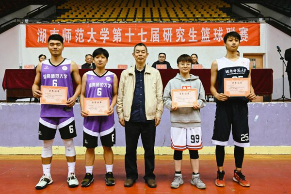 研究生院党委书记彭运石和体育学院副院长郭献中分别宣布了本届篮球联赛的获奖名单和比赛结果。颁奖嘉宾为获奖学院和个人颁发了锦旗和证书。