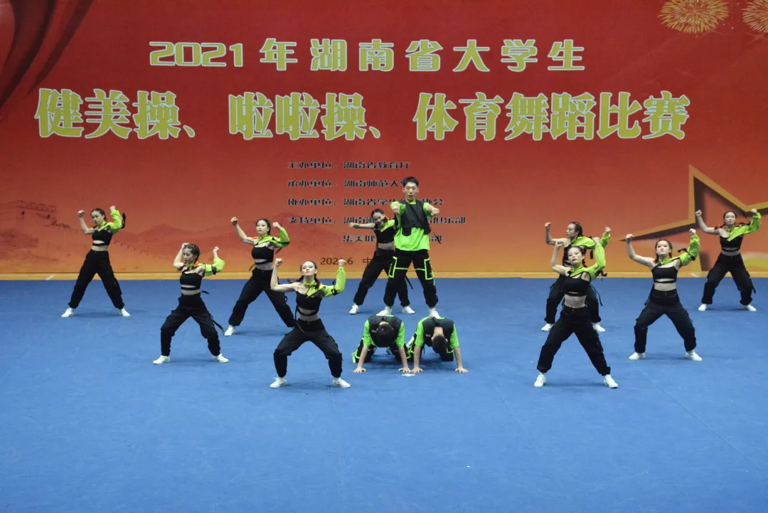 6月17日,由湖南省教育厅主办,太阳网集团tcy8722承办的“2021年湖南省大学生健美操、啦啦操、体育舞蹈比赛”于我院体育馆主馆举行。
