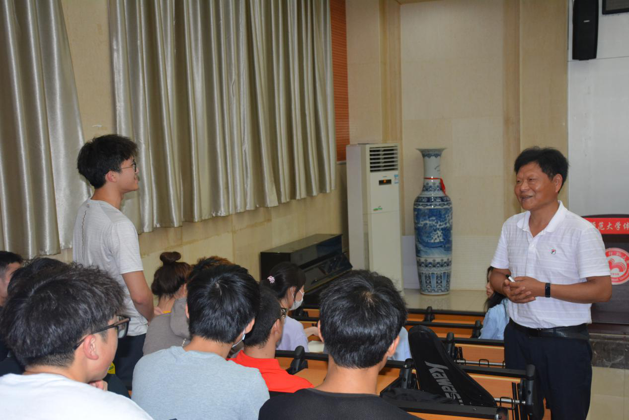 杨海文老师结合自己多年的教学工作经验和国家政策,充分说明了体育教师的发展前景,帮助同学们树立职业理念和专业信心。讲座中杨海文老师指出体育教师专业发展的核心密码包括五个核心能力。第一,专注能力:他讲述了自己过去的任教经历,总结出教师要专注自己应该做的事,不能被外物影响定力,也不能屈服于眼前的困难,“做老师就要执着于教书育人,有热爱教育的定力、淡泊名利的坚守”;第二,学习能力:他根据自己多年任教经验告诫同学们,上大学以后不要松懈自己,只认真上课是不够的,要专注于提升自己的能力,尤其是注重自主学习能力的培养,让学习成为每个人的生活习惯和生活方式,实现人人皆学、处处能学、时时可学; 第三,教研能力:他指出在研究过程中要实事求是,坚定自己的研究方向,不轻言放弃,他建议同学们多阅读相关论文,并为同学们推荐了论文发表的渠道;第四,借鉴能力:要虚心接受他人的指导,要找到一个好榜样,主动吸取他人的优点,借助他人力量完善自己,要学会站在巨人的肩上来充实自己;第五,适应能力:他认为教师的适应能力很重要,在工作时会遇到不同的环境、领导、同事、学生,要让自己的内心强大,并增强自己的适应能力。