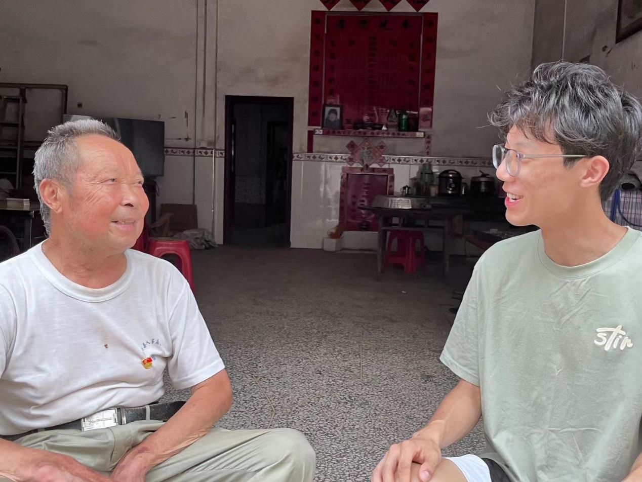 另外,实践团的队员们还拜访了老教师谢启泰爷爷。和谢爷爷的聊天中得知,古稀之年的谢爷爷已有40年的党龄。从他教书的第一天起,就将党员精神贯彻落实到乡村岗位中。谢爷爷十分关注学生的全面发展和人格塑造。他并不局限于传授知识,而是注重培养学生的品德素养和社会责任感。同时也引导他们树立正确的价值观,培养团队协作精神和社会关怀意识。谢爷爷谦虚地同队员们说:“乡村教师是一份责任重大的工作,我从事教育事业多年,不仅是为了传递知识,更是希望激发乡村孩子们的潜能,让他们在乡村拥有更美好的未来。作为党员,我一直牢记党的宗旨,坚持为农村教育贡献自己的力量。” 采访结束时,队员们由衷地向谢爷爷表示感谢,并希望他能继续为乡村教育事业贡献智慧和力量。他微笑着表示,退休不代表结束,他将继续为乡村孩子们播撒知识的种子。离开谢爷爷的家门,队员们怀着敬意和感激离去。他是一位乡村教育的奉献者,更是一位党员,用他的爱心和坚守,点亮了乡村孩子们的希望。