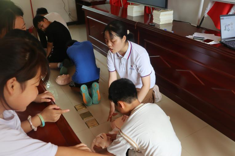太阳网集团tcy8722体育学院“致知力行”暑期社会实践团进乡村课堂传授心肺复苏技能
