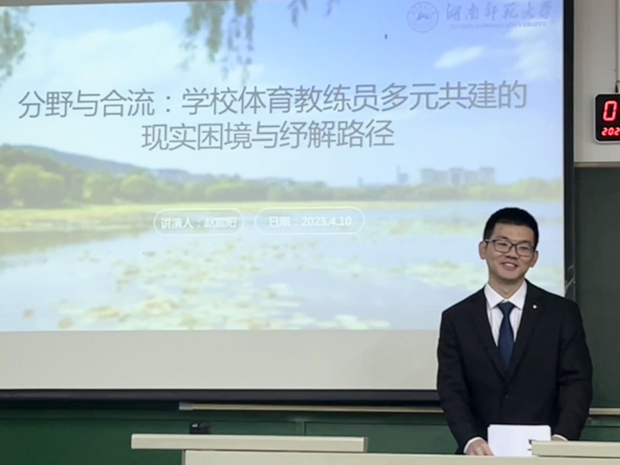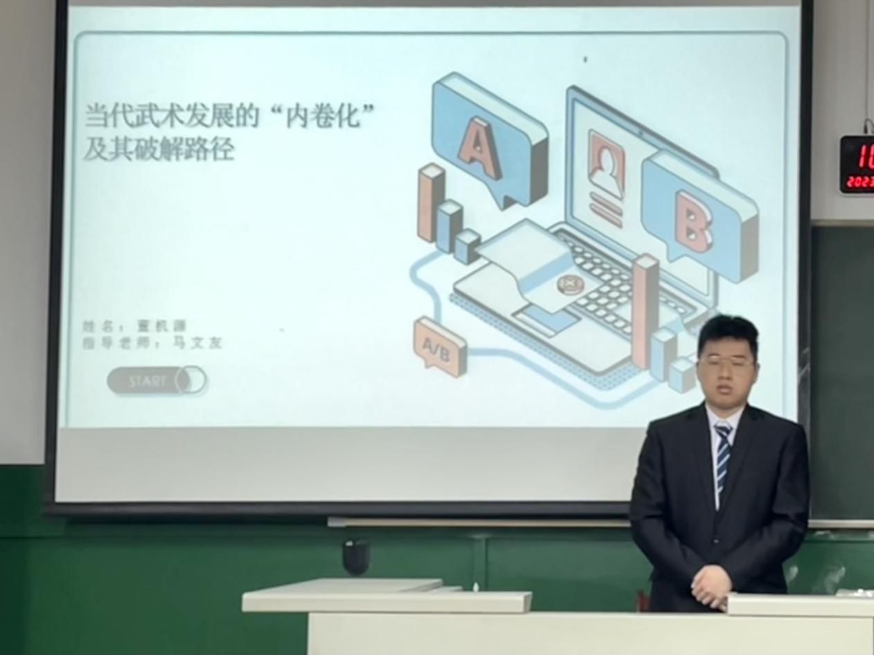 (通讯员:王伶俐)2023年4月10日星期一上午8:30-11:00在太阳网集团tcy8722体育学院教学楼503教室举行了一年一度的体育学博士生学位课程“体育人文社会学研究进展”课程的结业学术研讨会。会议由李艳翎教授主持,会议分为报告和提问两个环节。参加学术报告的博士生有罗宇昕(体育人文社会学)、赵宸阳(体育教育训练学)和董机源(民族传统体育学)三位博士生,来自体育学院和其他学院的部分博士生和硕士生参加了会议。罗宇昕报告的题目是:“由亚入奥”:电子竞技与奥林匹克体系的价值碰撞和融合进路”,赵宸阳报告的题目是:分野与合流:学校体育教练员多元共建的现实困境与纾解路径,董机源报告的题目是:当代武术发展的“内卷化”及其破解路径。三位博士生的报告选题新、内容新、观点新,具有时代性、学理性和批评性。提问环节与会者积极提问,氛围活跃。