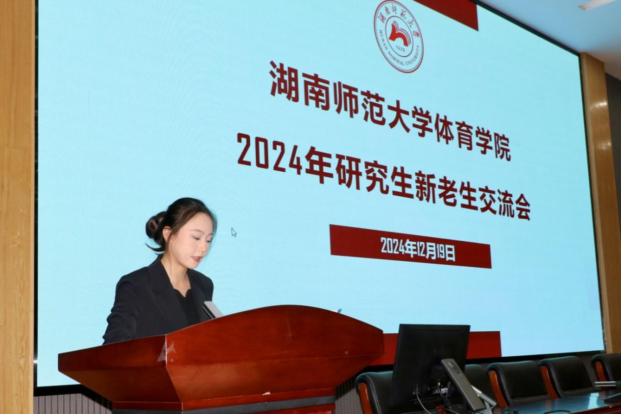 为了促进新老研究生之间的学习与交流,进一步推动体育学科研究生的学术研究和未来的职业发展,12月19日晚上7点,我院在鸿健楼二楼多功能报告厅举办了2024年新老研究生交流会,本次会议邀请了三名优秀师兄师姐参加,研会全体成员出席本次会议,会议由研会办公室部长邹睿涵主持,2024级全体硕士研究生参加此次会议。
