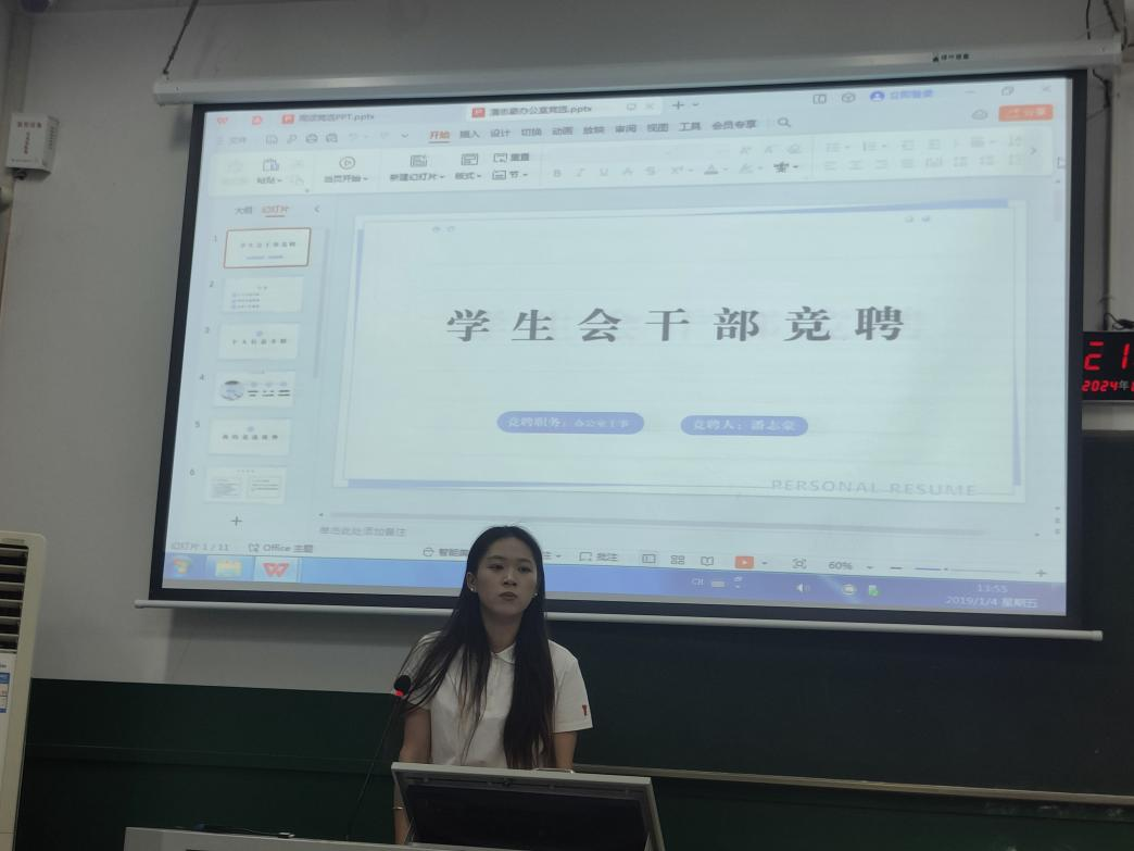 9月26日晚,我院研究生会第十一届招新竞选大会在我院鸿建楼503教室顺利召开。第十届主席韩一舟,党支部书记周振邦,研究生办公室助理杨雅茜以及第十一届研究生会全体成员参加了活动。此次活动由第十一届主席吴蕾主持。