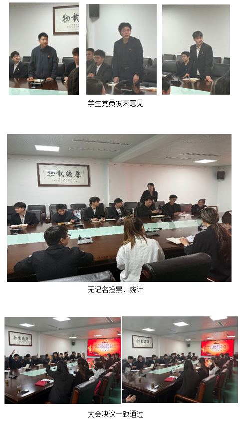 会上,张莎、胡禧凤2名同志依次汇报了自身思想、学习、工作及生活等方面的情况,深刻阐述了入党动机与成长感悟,表达了对加入中国共产党的坚定决心。入党介绍人详细介绍了发展对象的培养考察情况,与会党员围绕发展对象是否符合党员条件展开充分讨论,并发表意见建议。在无记名投票表决环节,全体与会正式党员严格按照民主程序,认真行使党员权利,经投票表决,一致同意接收相关发展对象为中共预备党员。新接收的预备党员依次表态,今后将以行动践行入党誓言,在理论学习中提升政治素养,在专业学习中追求卓越,在服务师生中锤炼党性,争做“有理想、敢担当、能吃苦、肯奋斗”的新时代合格党员,为学院发展和国家建设贡献力量。