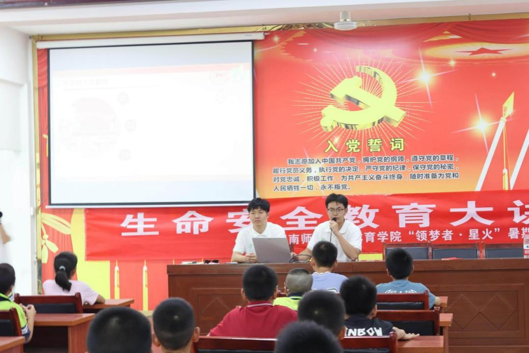 7月8日下午,我院“领梦者·星火”暑期实践团在邵阳市洞口县竹市镇村委会会议室三楼举办“生命安全教育”专题讲座,面向当地学生及家长普及安全知识,提升应急处置能力。