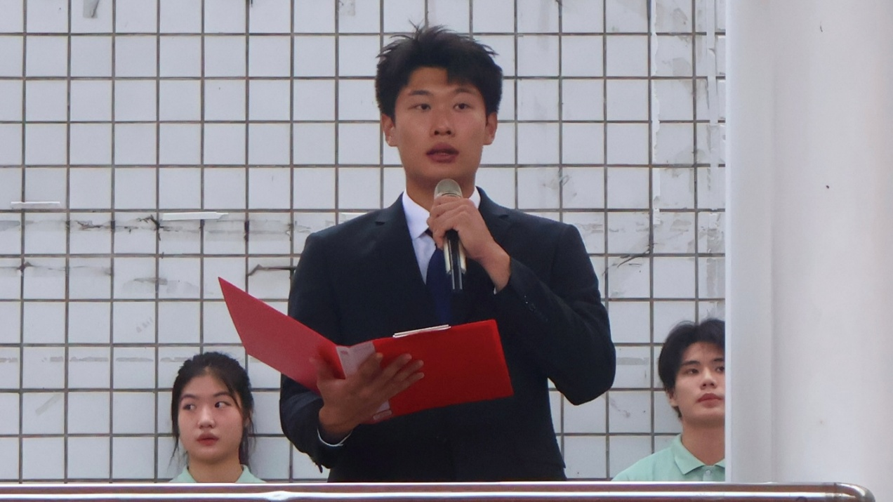 2024级运动训练篮球班和诗博作主题演讲,以“赓续精神伟力,奋进青春征程”为核心,结合新学期开启与抗战胜利80周年缅怀,呼吁大学生传承先辈担当与坚韧精神,将爱国情怀转化为实际行动:把个人理想融入国家发展,以专业服务社会,勤学强本领,奋斗炼意志。同时号召学予以青春奋斗助力民族复兴,用优异成绩致敬抗战胜利80周年。