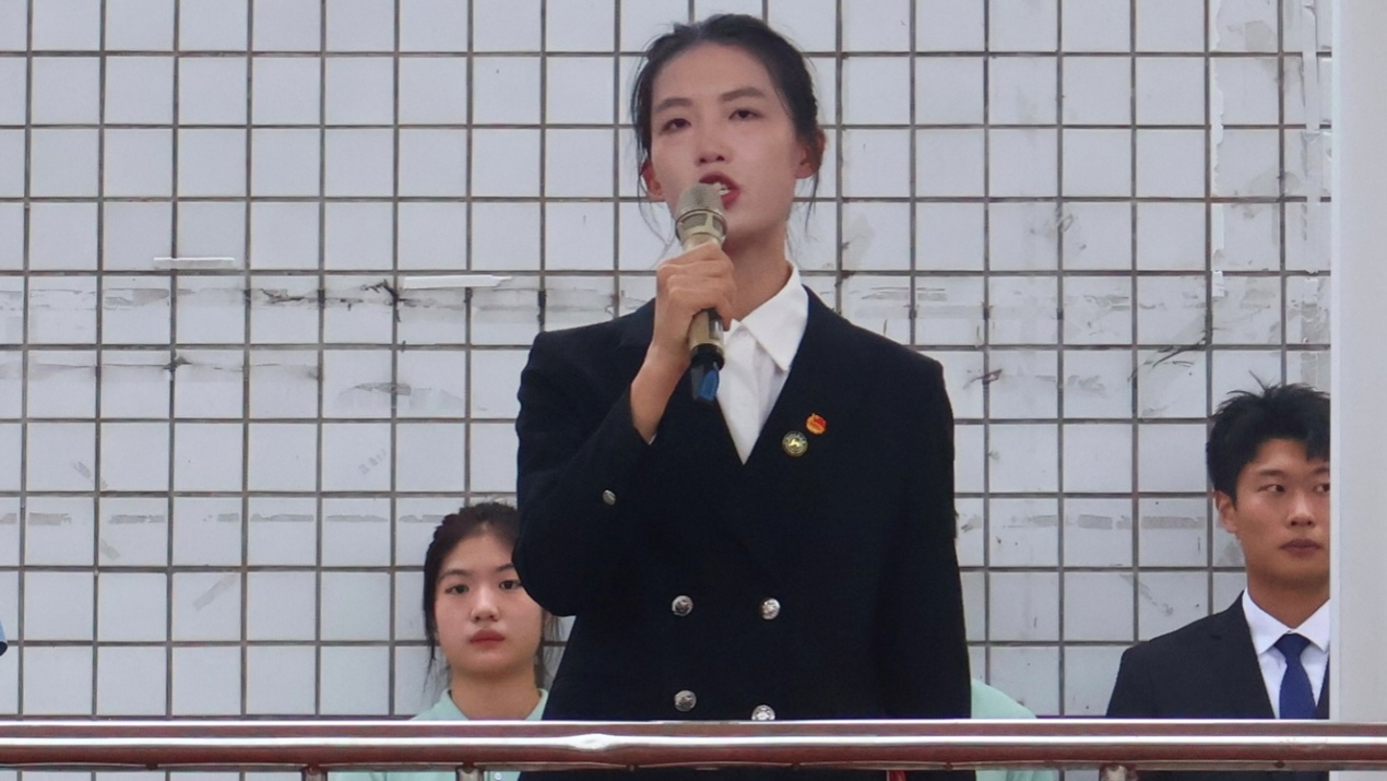 2023级运动训练专业足球3班的程雪,以“少年当存凌云志,不负青春正当时”为题作国旗下演讲。她结合《人民日报》言论及习近平总书记对新时代青年的要求,强调树立远大理想的重要性,并针对不同年级学生点明新学期意义,提出三点成长践行方向:一是明确目标、笃行落实;二是博采众长、厚积薄发;三是修身立德、坚守初心。最后,她向全体师生致以美好祝愿。