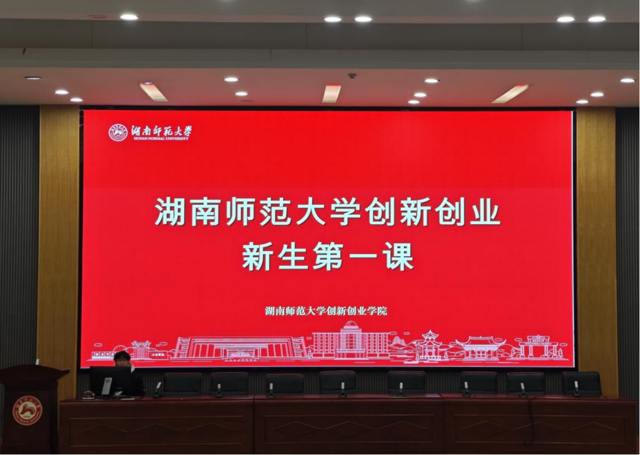 讲座围绕“青春湘行・创见未来”主题,从学生视角出发,结合杨於道同学在创新创业竞赛、项目运营及团队建设等方面的丰富经验,为在场同学带来了一场内容详实、启发性强的“创新创业第一课”。杨於道结合自身参与“互联网+”大学生创新创业大赛、主持国家级大创项目以及在湖南卫视“创业开放麦”等平台的实战经历,系统讲解了竞赛选题、团队构建、答辩技巧及创业与竞赛的区别等关键内容,鼓励同学们勇于尝试、敢于实践,从“敲门人”到“守夜人”与“领路人”。